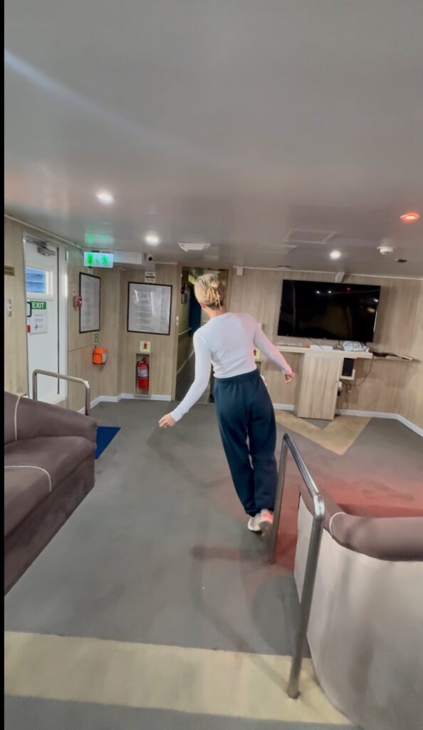 On our sail days we had a fairly calm passage of 3.5 m but it still felt like a lot of motion on board. Don’t worry they provide dramamine on board, and I highly recommend taking before just in case. This was just trying to walk around!!